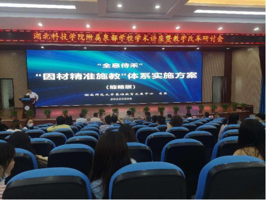 (通讯员 胡朝阳 审稿 邹强)5月8日下午15:00,以“因材精准施教体系实施方案”为主题的教学改革研讨会在英国上市公司官网365院附属泉都学校学术报告厅召开。英国上市公司官网365院党委常委、副院长钟儒刚,咸安区教育局副局长冯成,基地主任英国上市公司官网365院师范学院/教育学院院长邹强、常务副院长孙和平、副书记杨胜以及部分教育基本理论课教师和学科教学法教师,英国上市公司官网365院附属泉都学校部分教师,近50余人参加了此次研讨会。本次研讨会严格按照疫情防控要求,除到场的领导及教师,其他教师通过“腾讯会议”在线观看了本次研讨会直播。