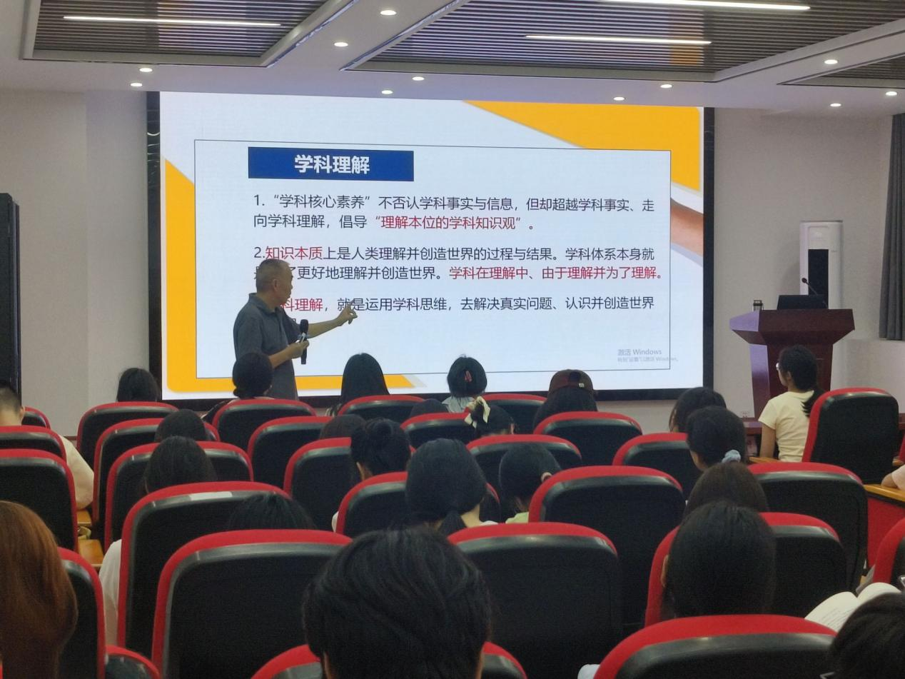 与此同时,刘教授进一步指出,在学科教学中,我们应运用学科思维去解决实际教学问题,以提升教学效果。关于“学科核心素养”,刘教授提出了“理解本位的学科知识观”,并深入剖析了学科核心素养的内涵。他认为,核心素养的培养应贯穿于学科教学的全过程,以促进学生全面发展。他还着重探讨了指向核心素养的教学变革,他强调,核心素养的教学应从6个关键方面进行变革,教师应从5个方面进行自我反思,以不断提升教学质量和效果。