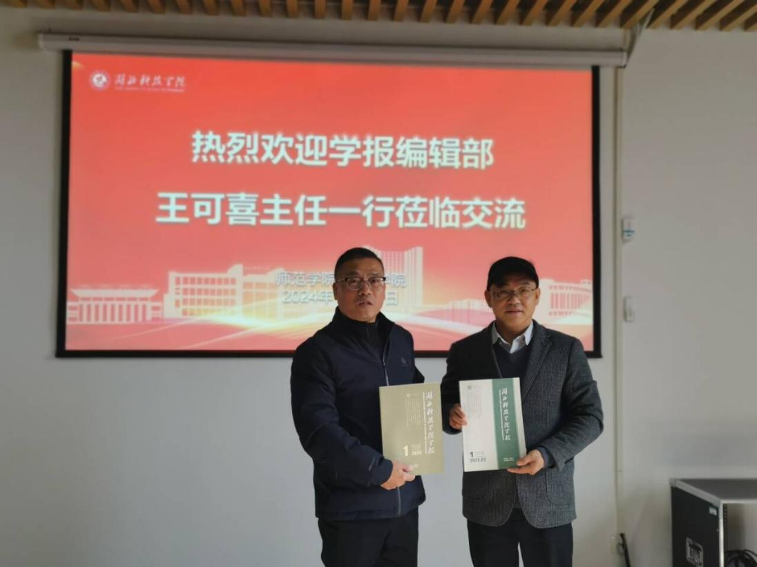 中心主任、师范学院、教育学院院长邹强对王可喜主任一行来访表示热烈欢迎,并以《建平台 树特色 谱写教师教育新篇章》为题汇报了师范学院、教育学院学科建设和科研工作及中心建设发展情况。王可喜主任介绍了学报综合版近3年来影响因子的变化,特别是从特色栏目开设、特稿选用、优稿刊用、栏目调整、论文网络首发等方面详细阐述了提升学报竞争力的举措。他对师范学院、教育学院、研究中心一直以来关心与支持学报发展表示感谢,对教育栏目调整和设置进行了说明,并希望未来双方进一步加强交流合作,以提升学报影响力。