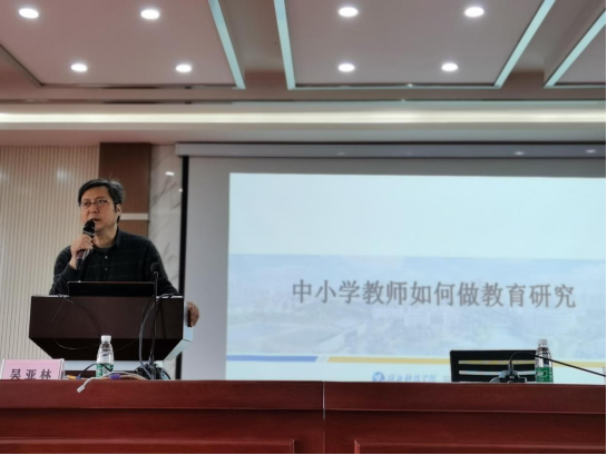 吴亚林教授以《中小学教师如何做教育研究》为主题,从“教师为什么要做研究”、“教师要研究什么”、“教师如何做研究”三大方面详细地解读了教师做课题的重要性和必要性,以及如何有效地在日常的教学工作中做好研究。对于如何高质量填写课题立项报告,吴教授则结合自身多年的评审经验和科研素养,以实践案例说明为主,理论指导贯穿其中,讲述言简意赅,深入浅出,为老师们进行课题研究指明了方向、提供了方法、增强了信心。